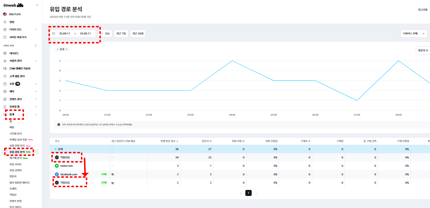 https://kkkbutler.imweb.me/admin/stat/inflow_analysis?startDate=2025-09-11&endDate=2025-09-11&orderItem=totalVisitCount&orderDirection=desc&page=1&limit=10&deviceType=
