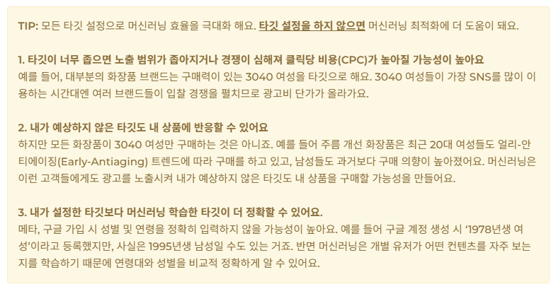 광고대상 선택에 대한 문의사항은 3단계 : 타깃 설정하기 가이드 내용을 참고해보실 수 있겠습니다. :)