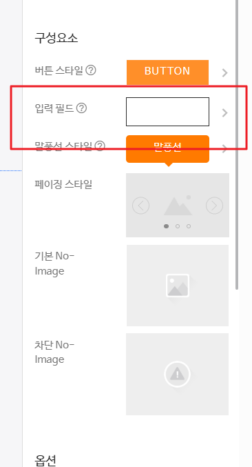 [디자인 모드 > 오른쪽 상단 톱니바퀴 > 공통 디자인 설정] 에서 입력필드의 디자인을 다른 것으로 변경해 주시면 됩니다.